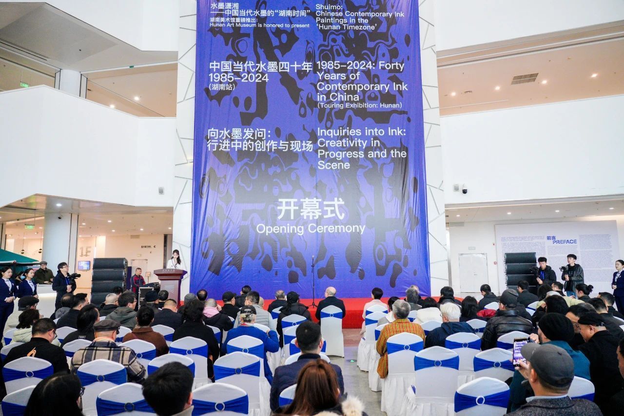 开幕式上,湖南省文联党组书记、主持日常工作副主席乐奕宣布展览开幕。湖南美术馆馆长、省美协副主席田绍登指出,展览既是对历史的回望,也是对未来的展望,强调美术馆将致力于搭建水墨艺术与公众对话的平台。策展人林书传提出,中国当代水墨的价值在于以“民族自信”连接传统与未来。而《中国当代水墨年鉴》发起人张凯则展望了水墨艺术在AI技术与全球化背景下的“传统、科技、人文”三维生态构建。